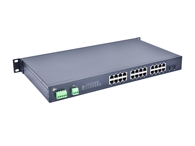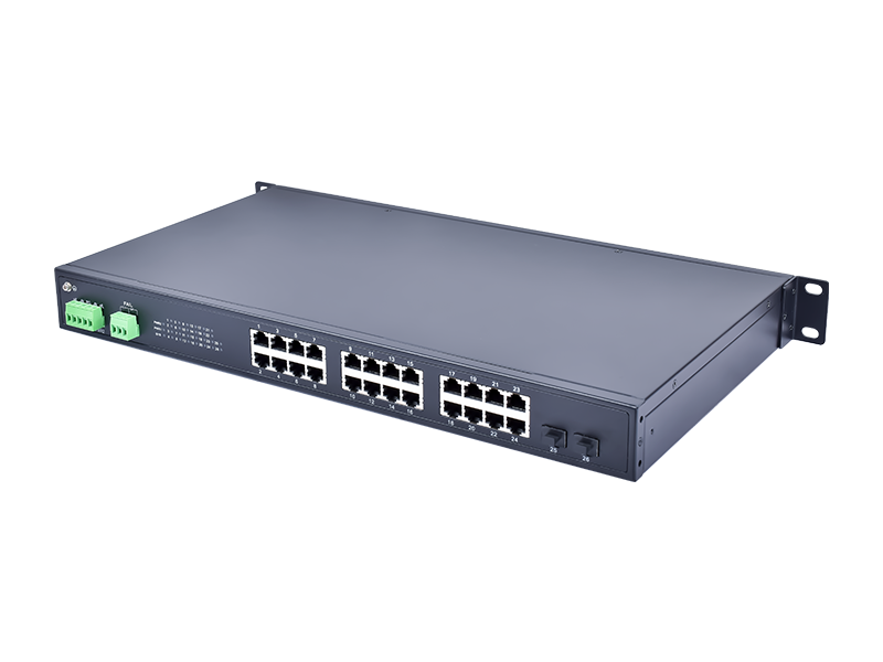 支持 2个千兆光口+24个10/100/1000 Base-T 自适应 RJ45 端口。遵循工业产品设计与用料,外壳采用19英寸钢合金设计,前出灯板,后出线,宽范围工作环境温度、DC37-75V/AC100-240V双电源冗余等技术